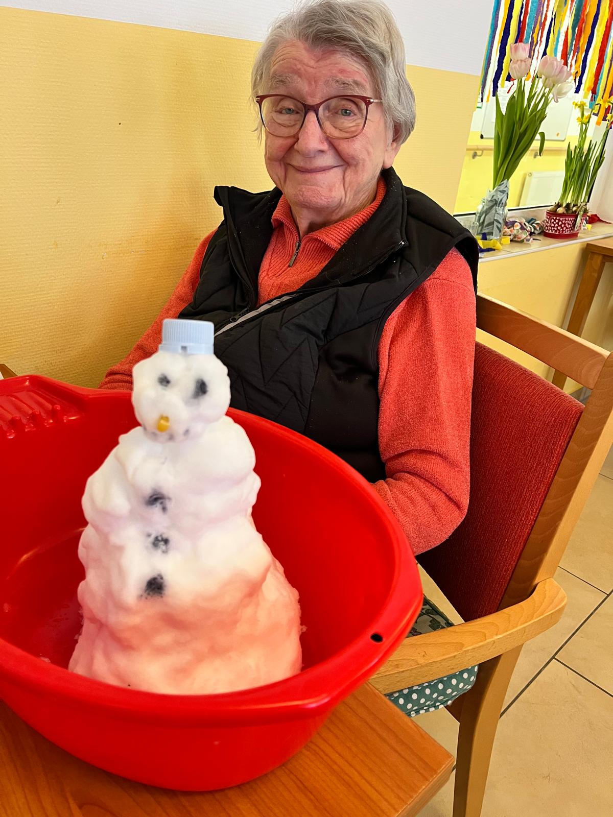 Anlässlich des tollen Winterwetters am 16.02. haben wir uns mal eine ganz andere Beschäftigung überlegt. Wenn unsere Bewohner*innen nicht nach draußen in den Schnee können, dann holen wir eben den Schnee zu ihnen.
